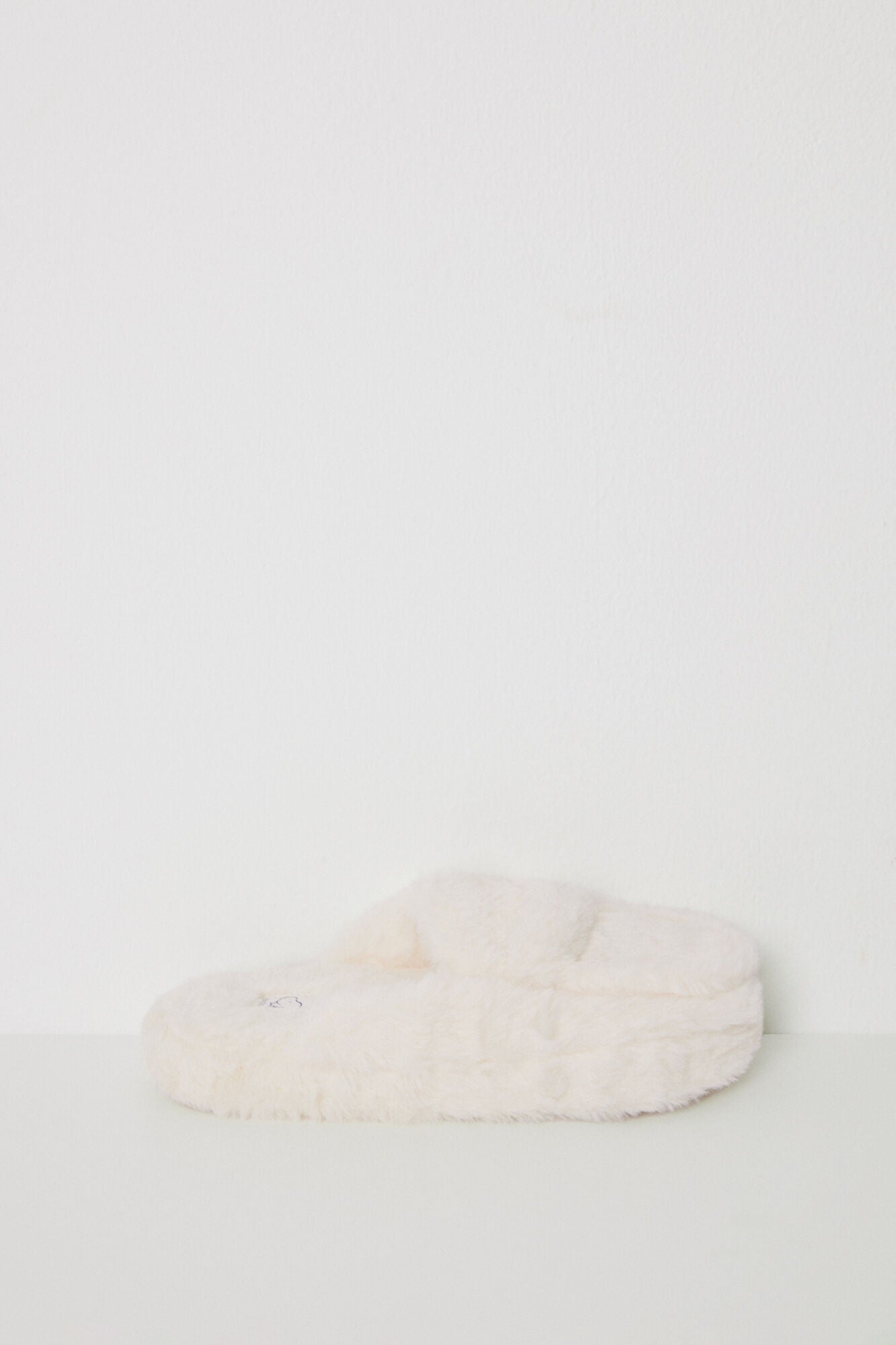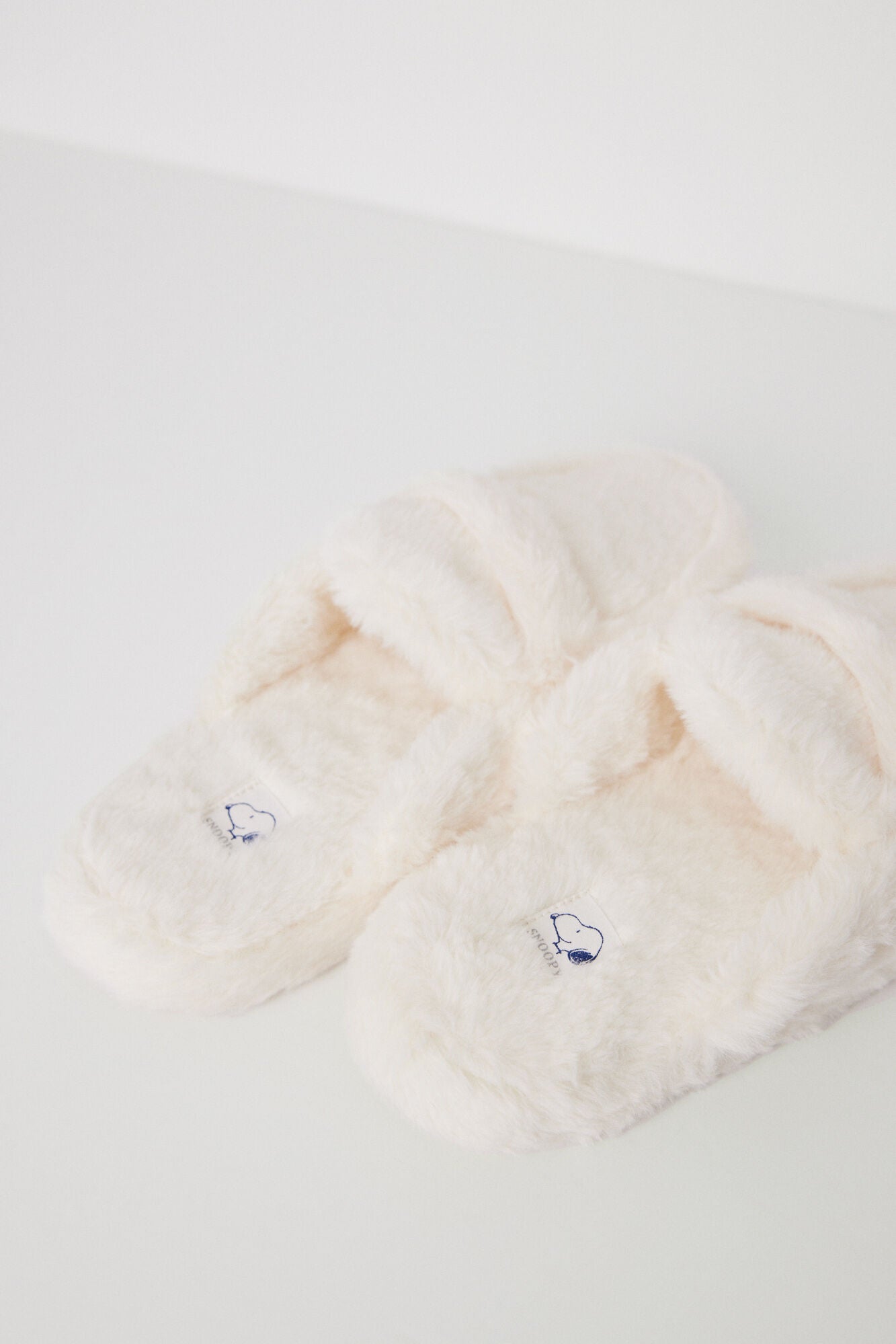 • Zapatillas de estar por casa, destalonadas en forma de mocasines, cubiertas de tejido de pelo super suave color crudo y detalle de dibujo de Snoopy. Suavidad y comodidad se unen en estas zapatillas, hechas para que tus pies descansen. ¡Perfectas para cuando llega el frío!