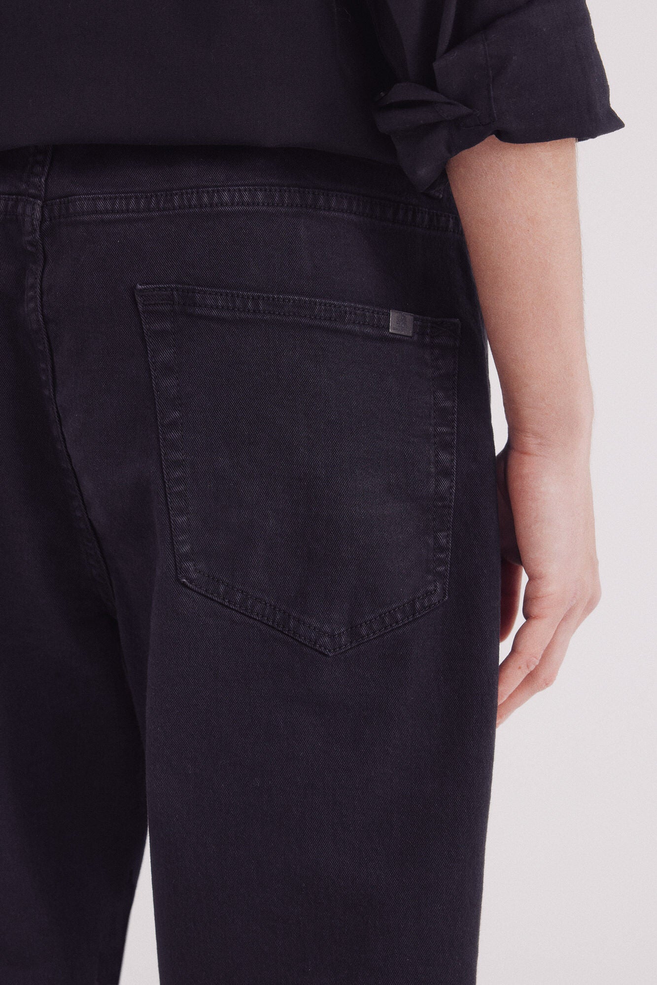 • Tintura en prenda y lavado de aspecto usado con arrugas en el frontal