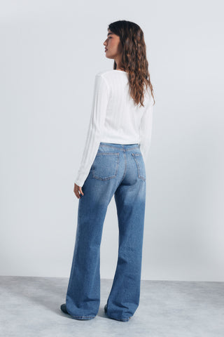 Jeans Wide Leg Talle Alto con Bolsillos