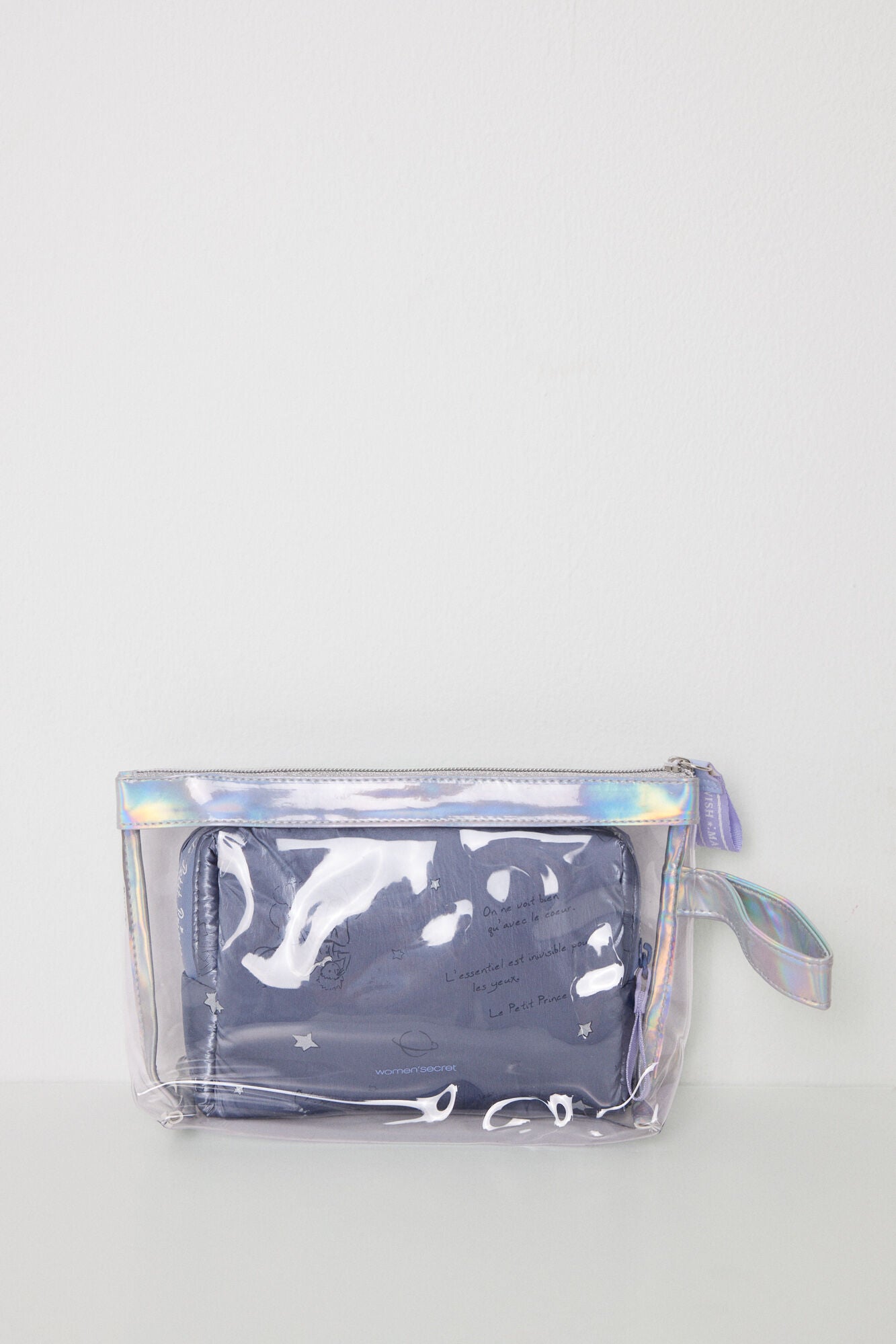 • Paqute de dos neceseres: uno mediano transparente con detalle tornasolado y otro más pequeño con estampado de "El Principito". ¡Perfecto para guardar todos tus esenciales de belleza!