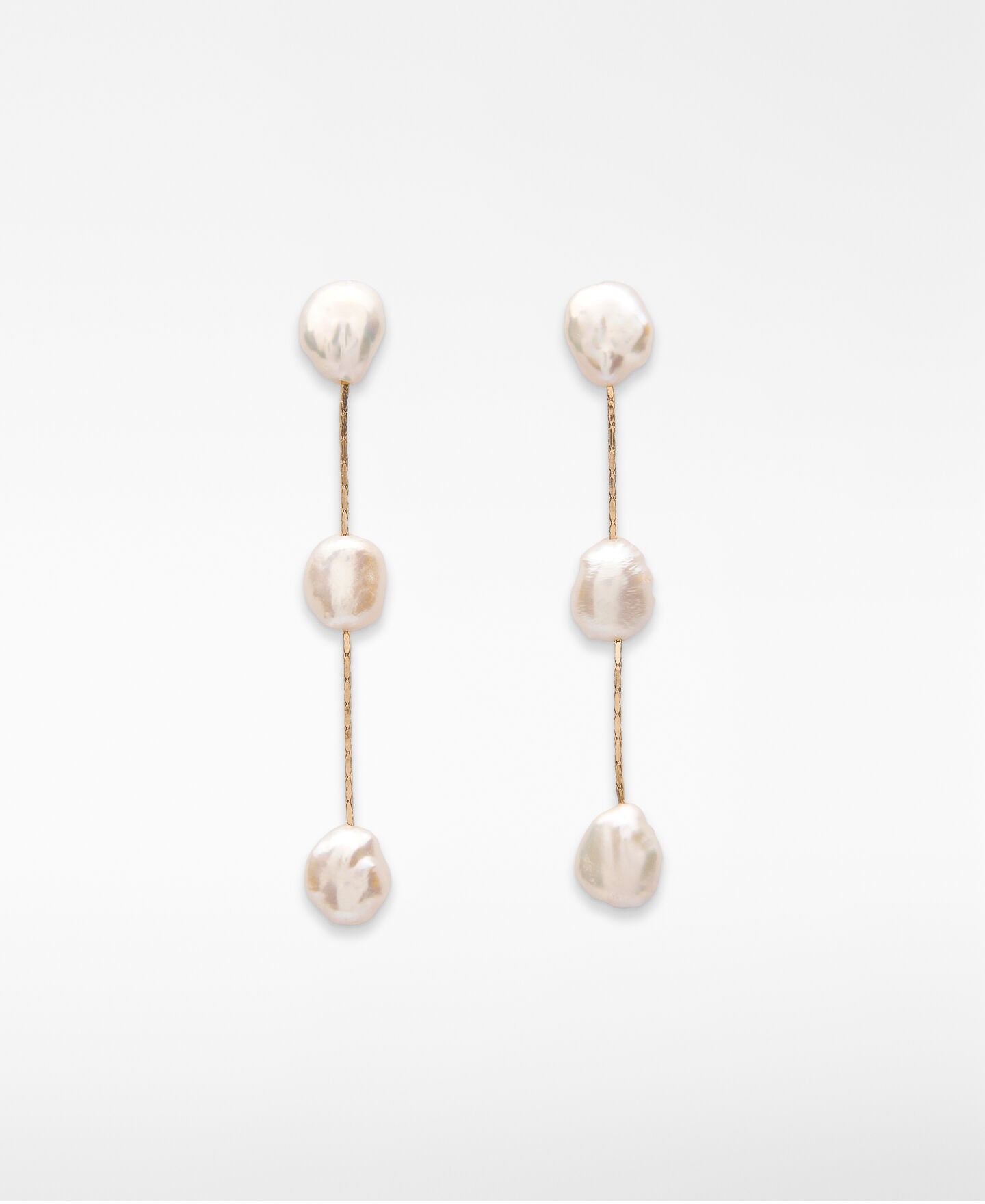 • Aretes colgantes hechos de segmentos de cadena y perlas