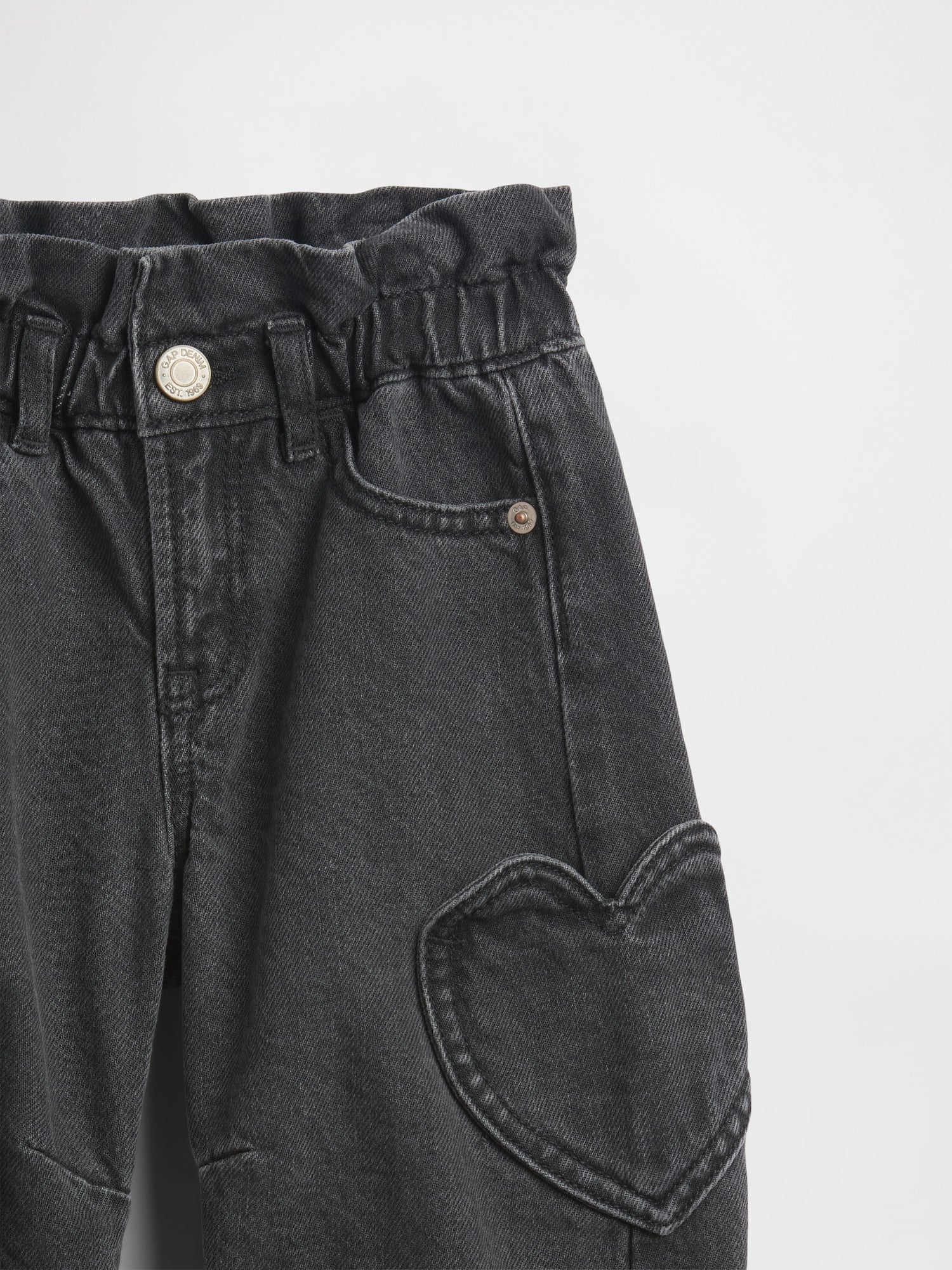 • Estilo clásico de cinco bolsillos, bolsillos con parche de corazón a los lados