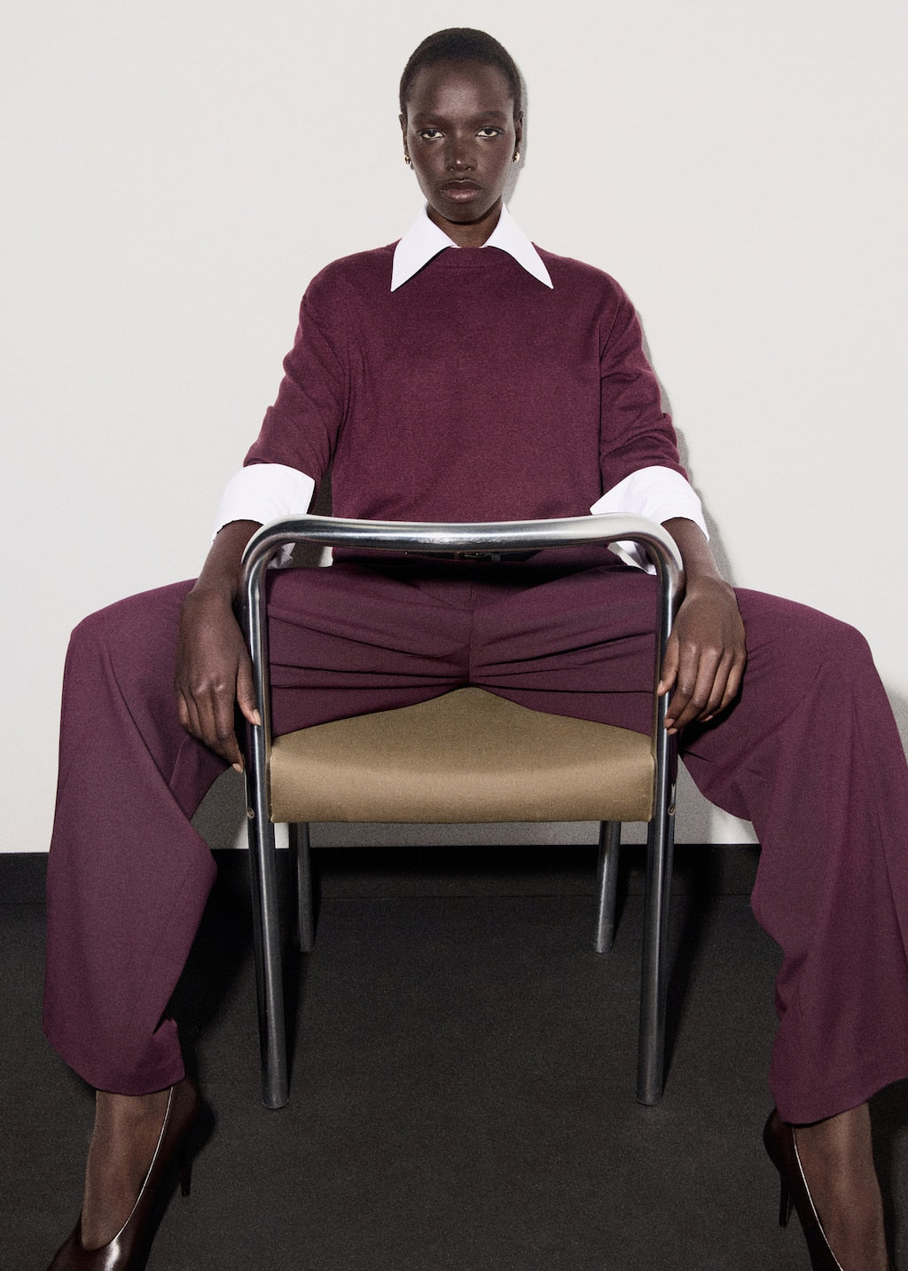 • Confeccionado en tejido de punto fino, este diseño recto presenta un cuello caja y manga larga