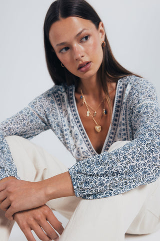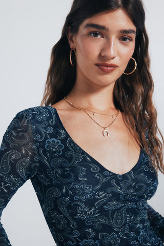 Camiseta Manga Larga Detalle Fruncido Estampado
