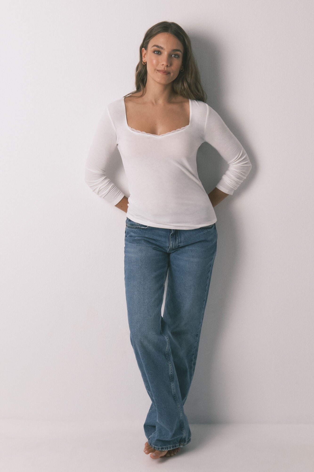 Camiseta Manga Larga con Detalle Encaje – Line Up Shop