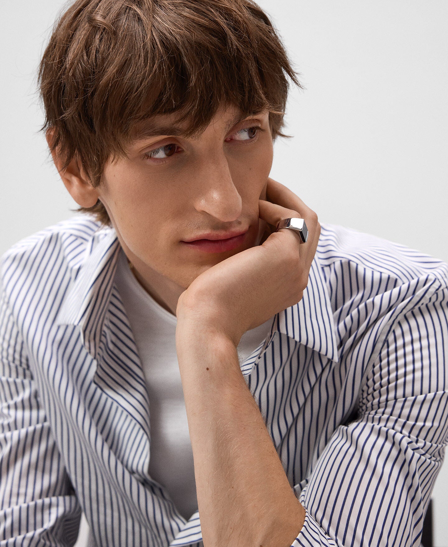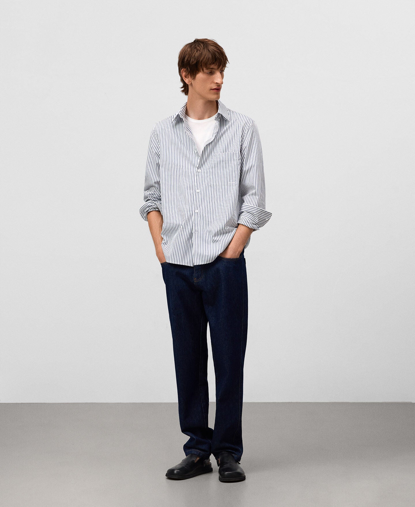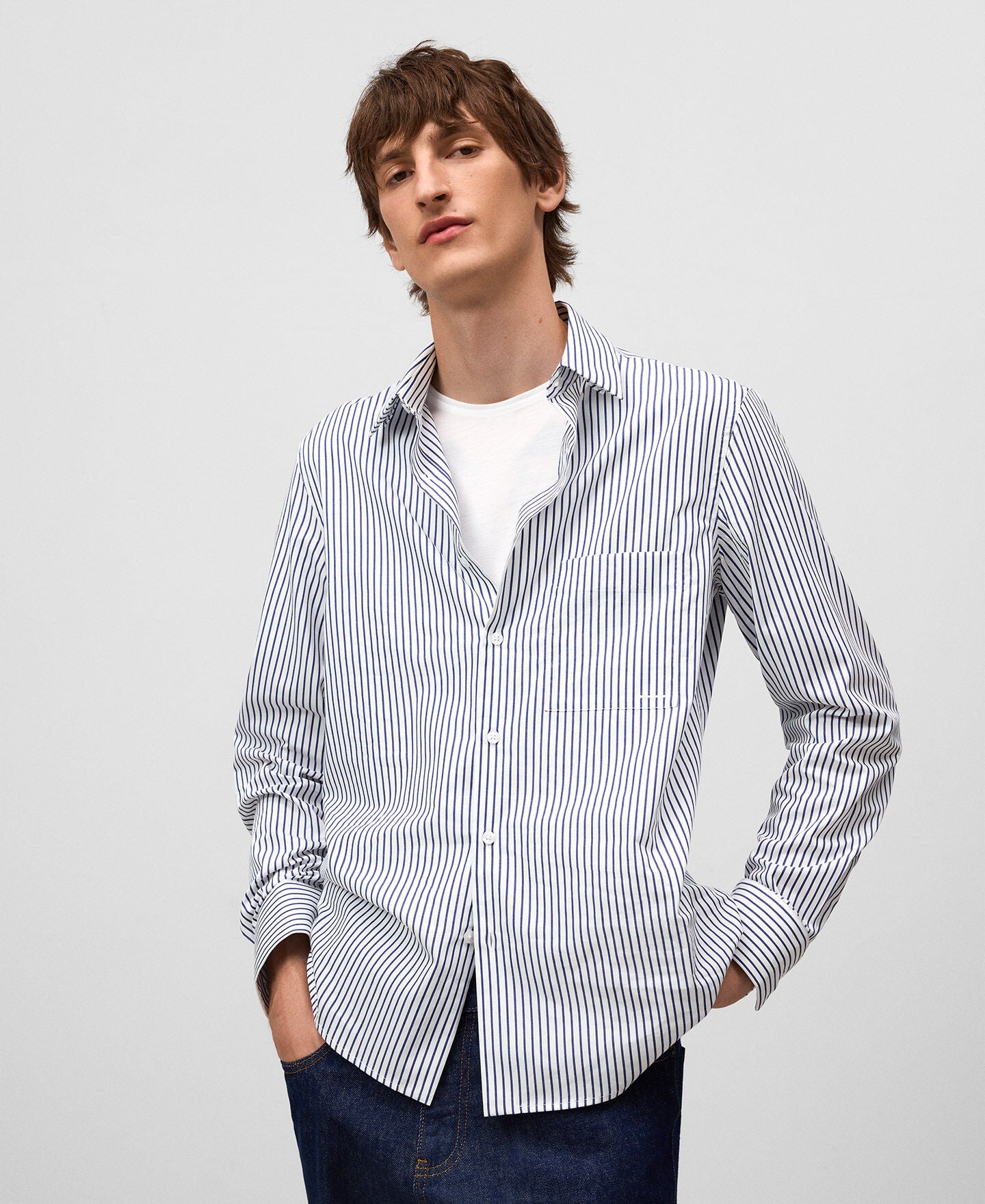 • Camisa regular fit rayas blanco y azul algodón hombre