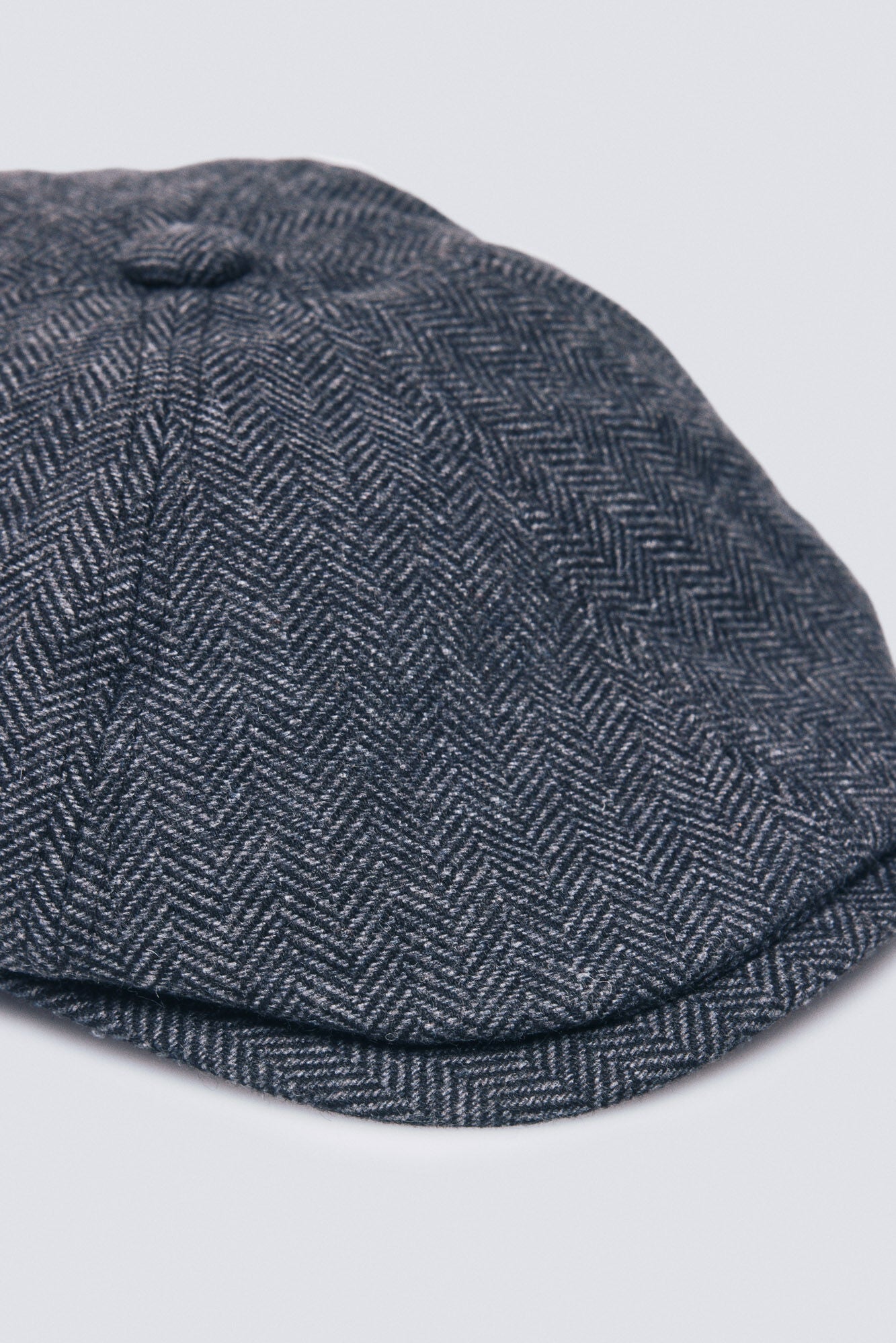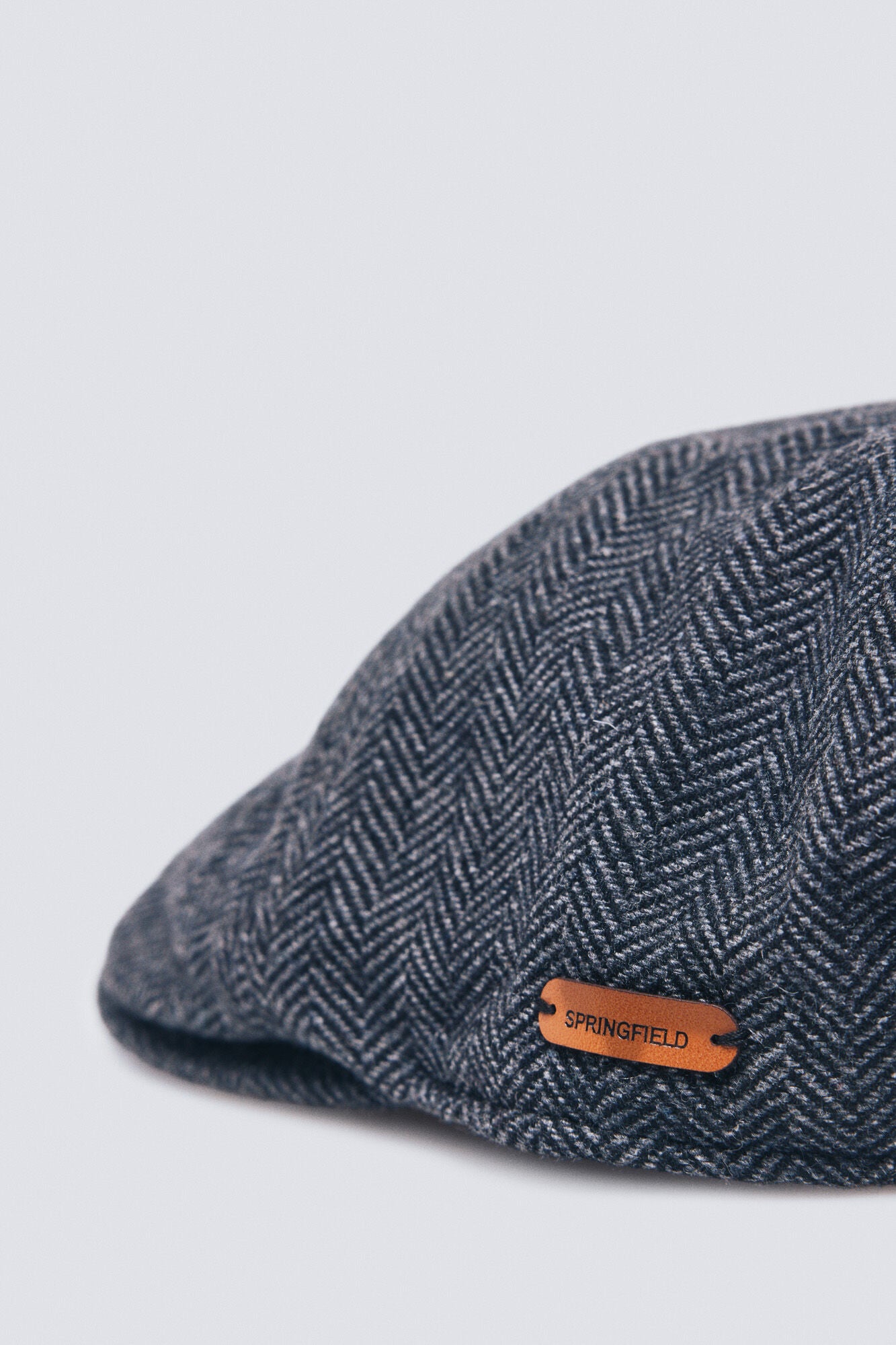 • Gorra plana tipo Gatsby con un 40% de lana en espiga color gris oscuro