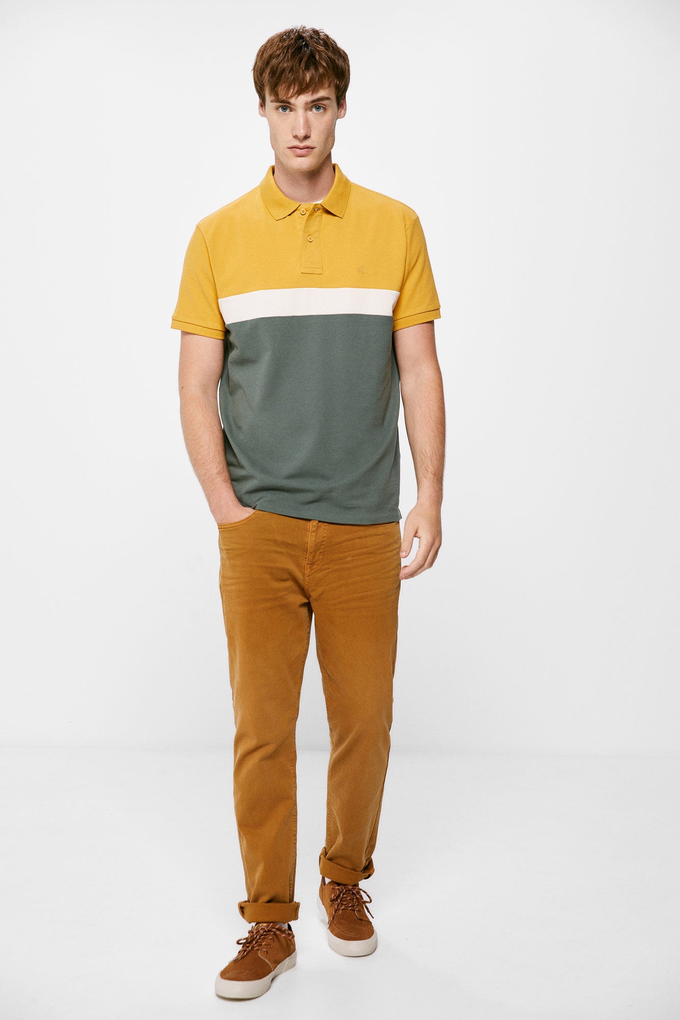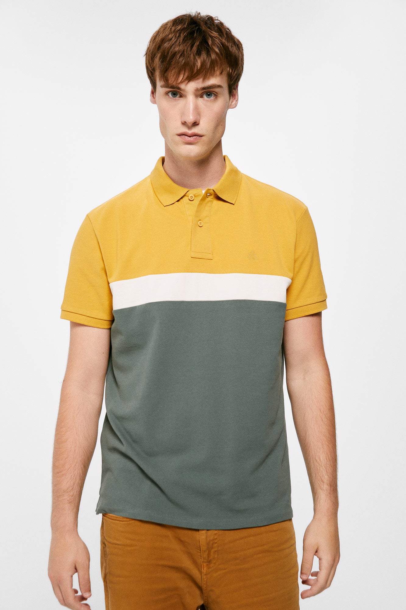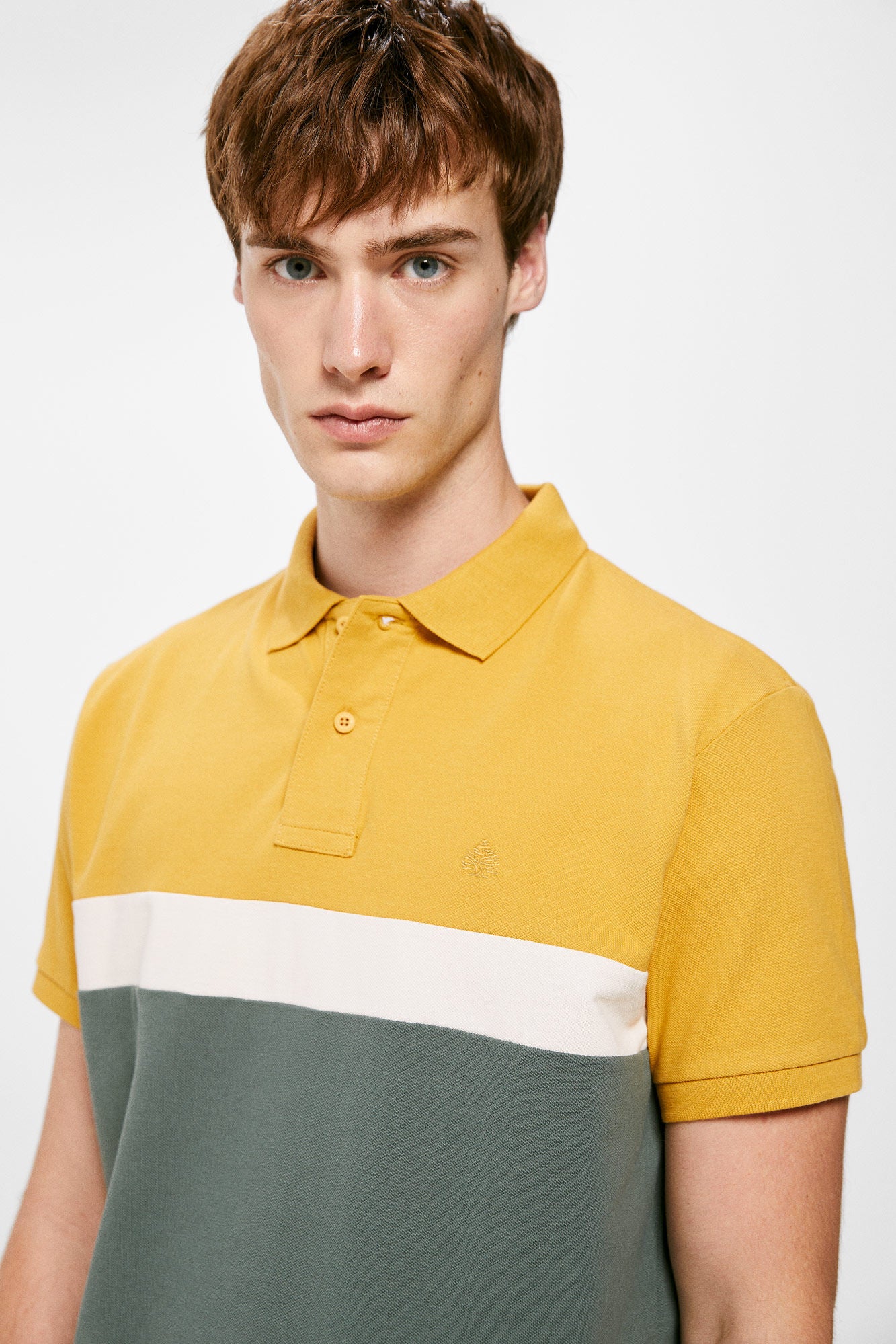 • Polo de piqué 100% algodón de manga corta en regular fit con bloques de color