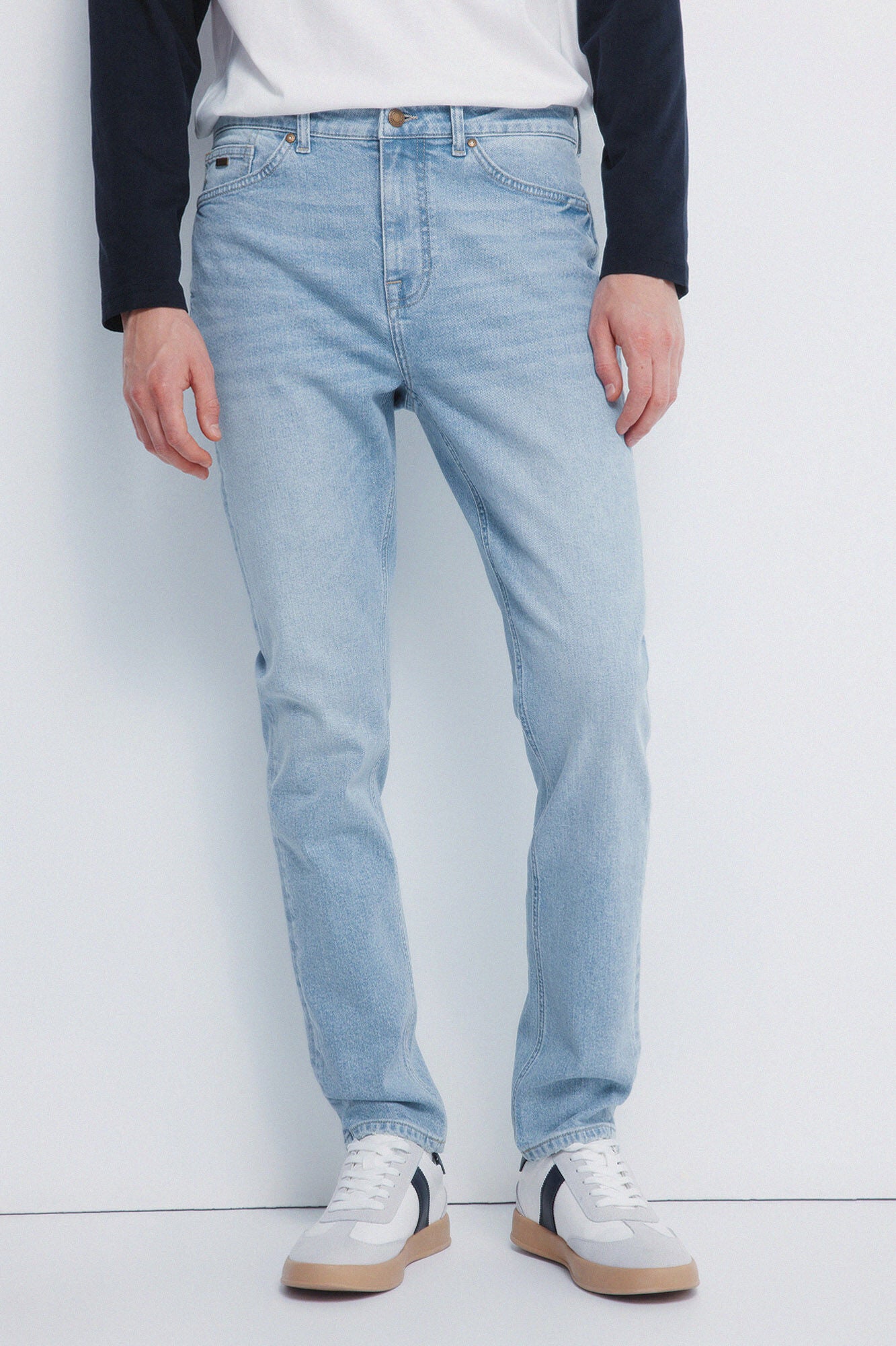 • Lavado medio-oscuro de aspecto usado con arrugas en el frontal