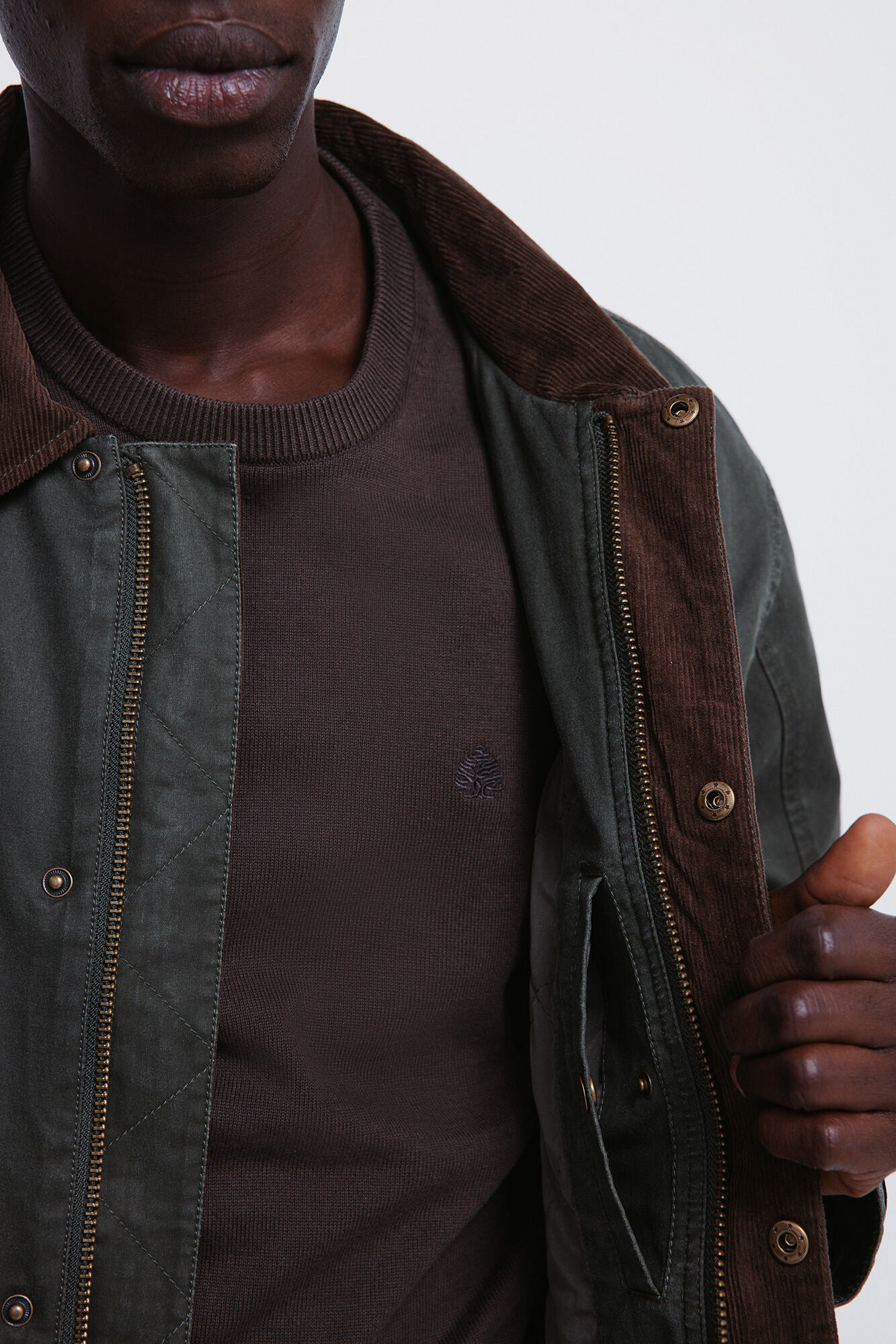 • Con cuello camisero de pana a contraste, cierre de cremallera y botones automáticos, bolsillos de plastrón con botón automático, bolsillos interiores, puños ajustables, y detalle de etiqueta decorativa