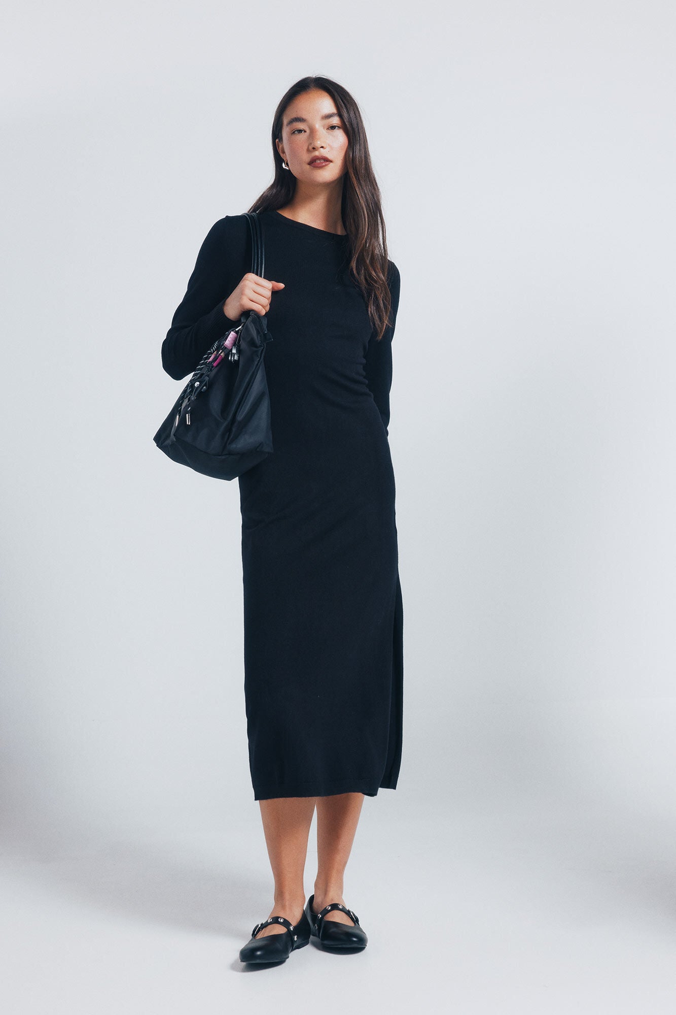 Vestido Midi Manga Larga con Tejido Canalé | Line Up Shop