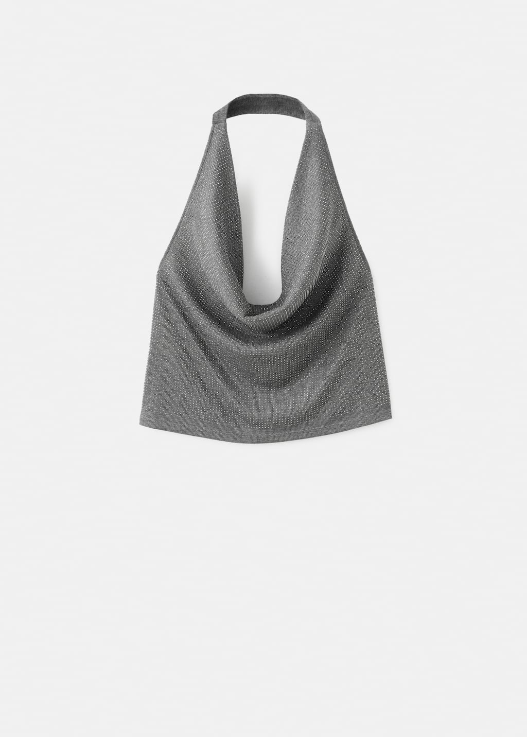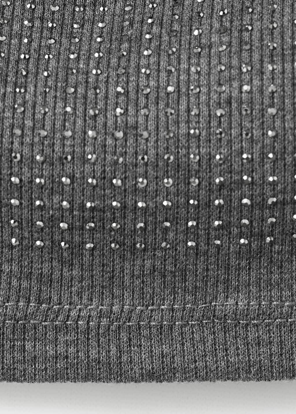 • Esta blusa presenta un diseño corto ajustado con detalles de pedrería que le aportan brillo