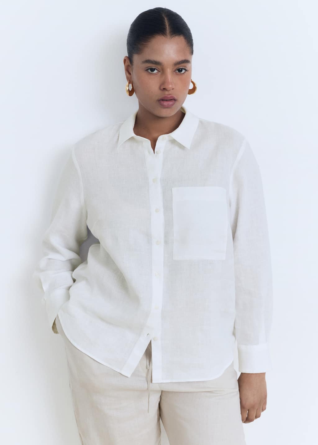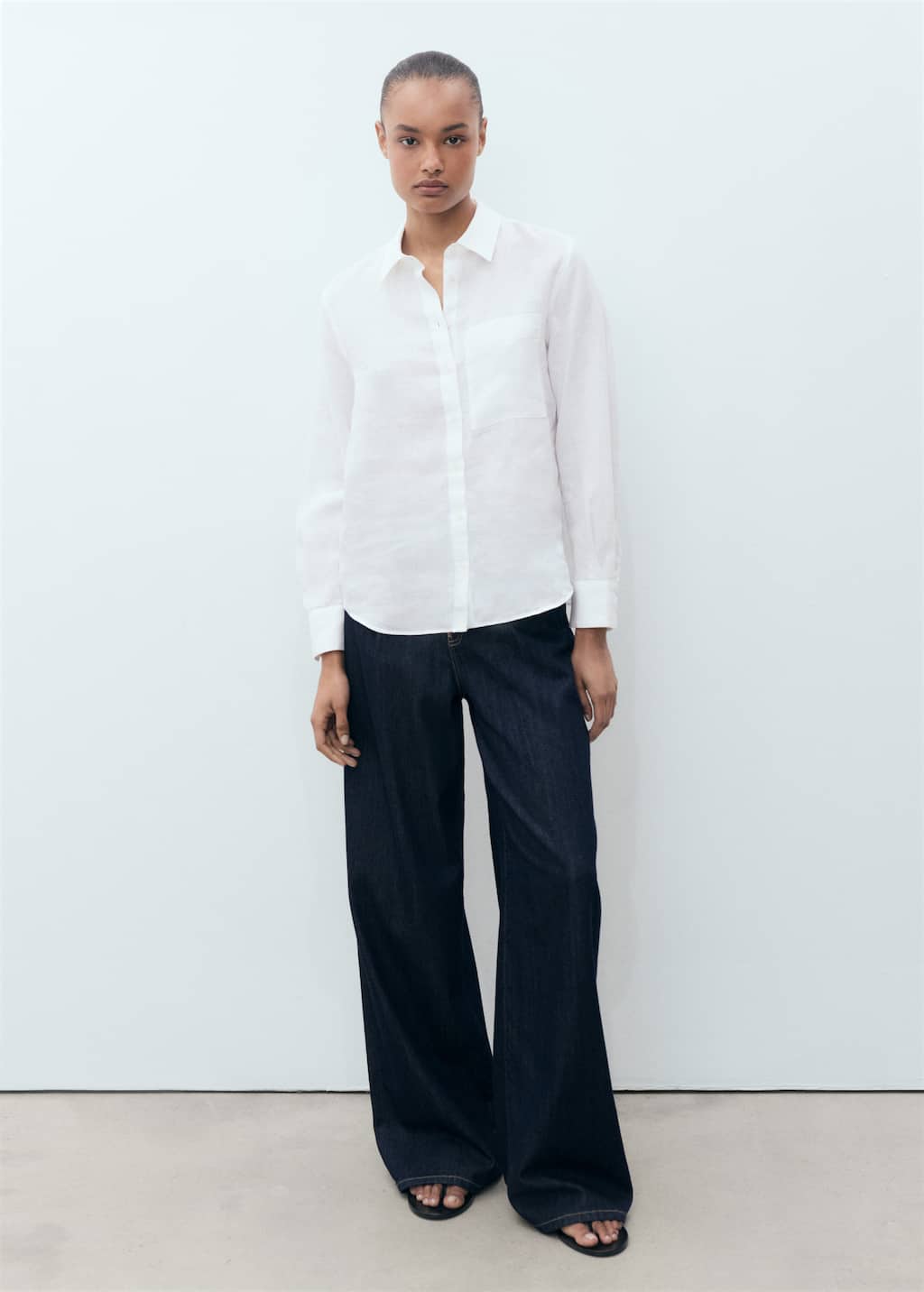 Para camisas casuales, buscá una camisa con cuello que se ajuste bien a tu cuello. Colocá el collar plano sobre una mesa y medí el borde "superior" del collar. Para camisas de vestir, medí alrededor de la base de tu propio cuello, manteniendo un dedo entre tu cuello y la cinta métrica.