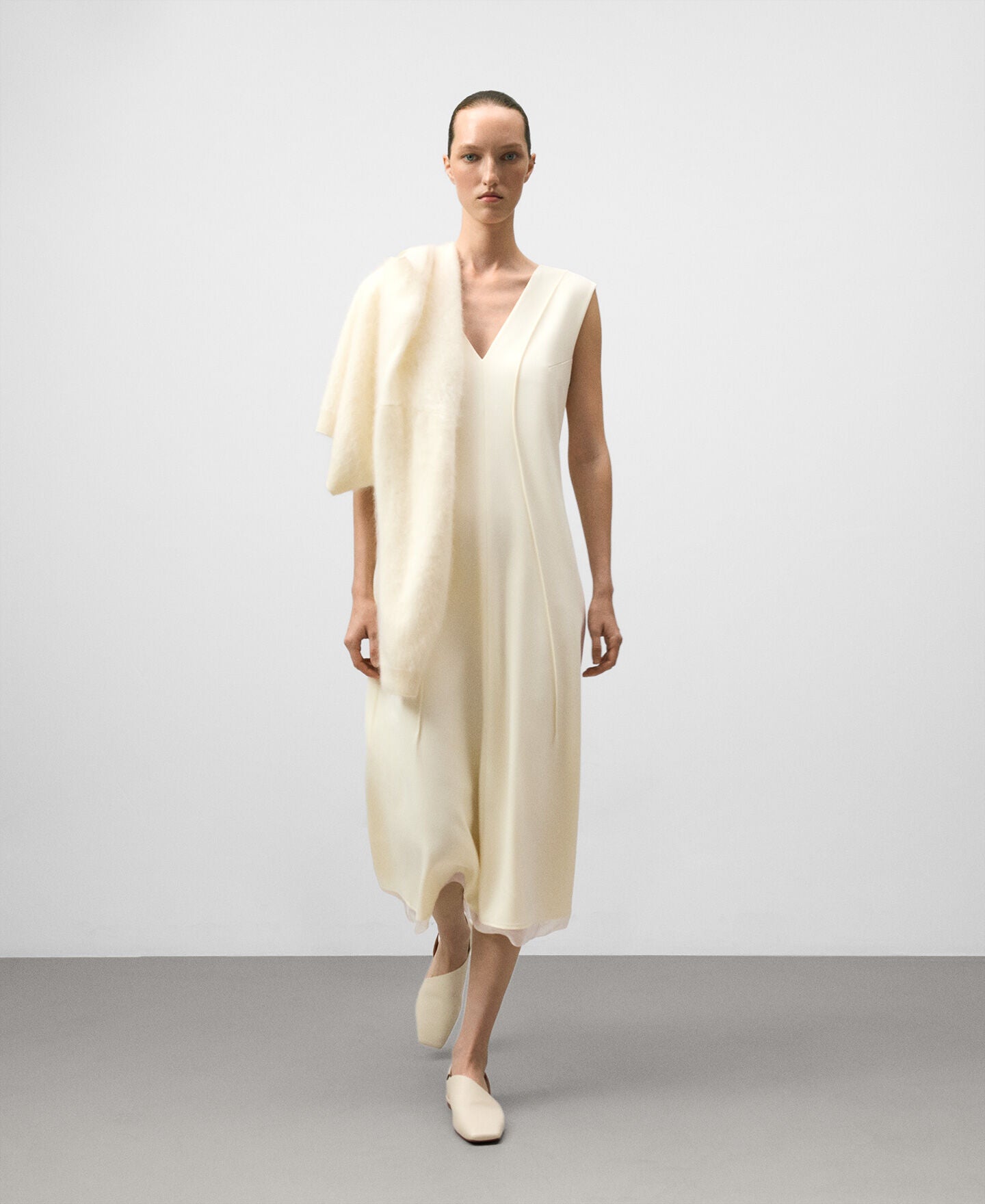 Vestido Cuello V con Detalle de Organza | Line Up Shop