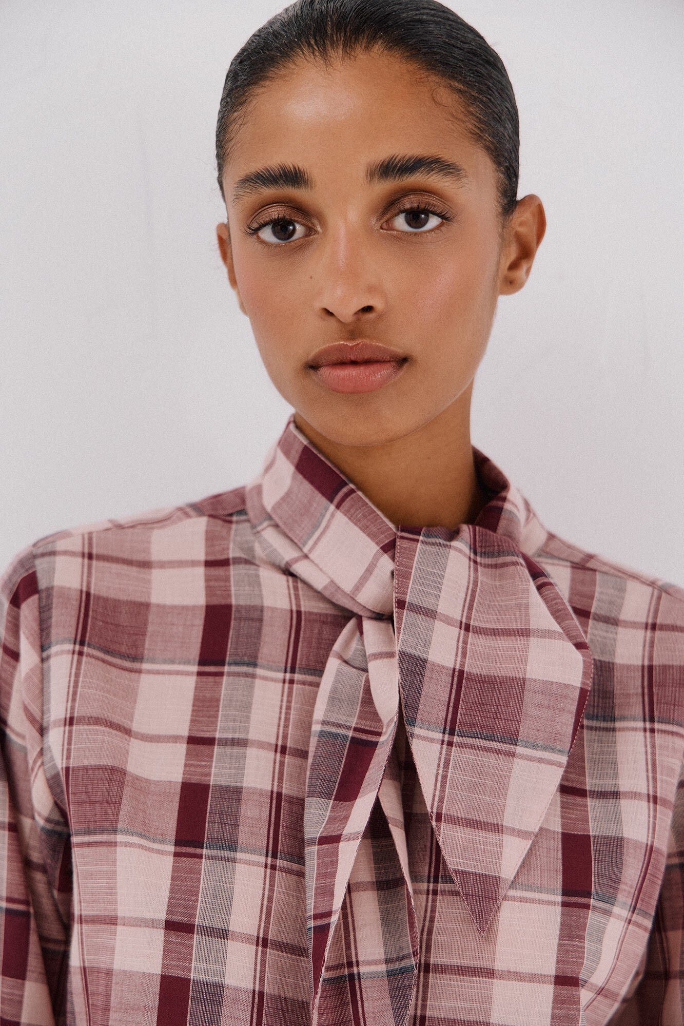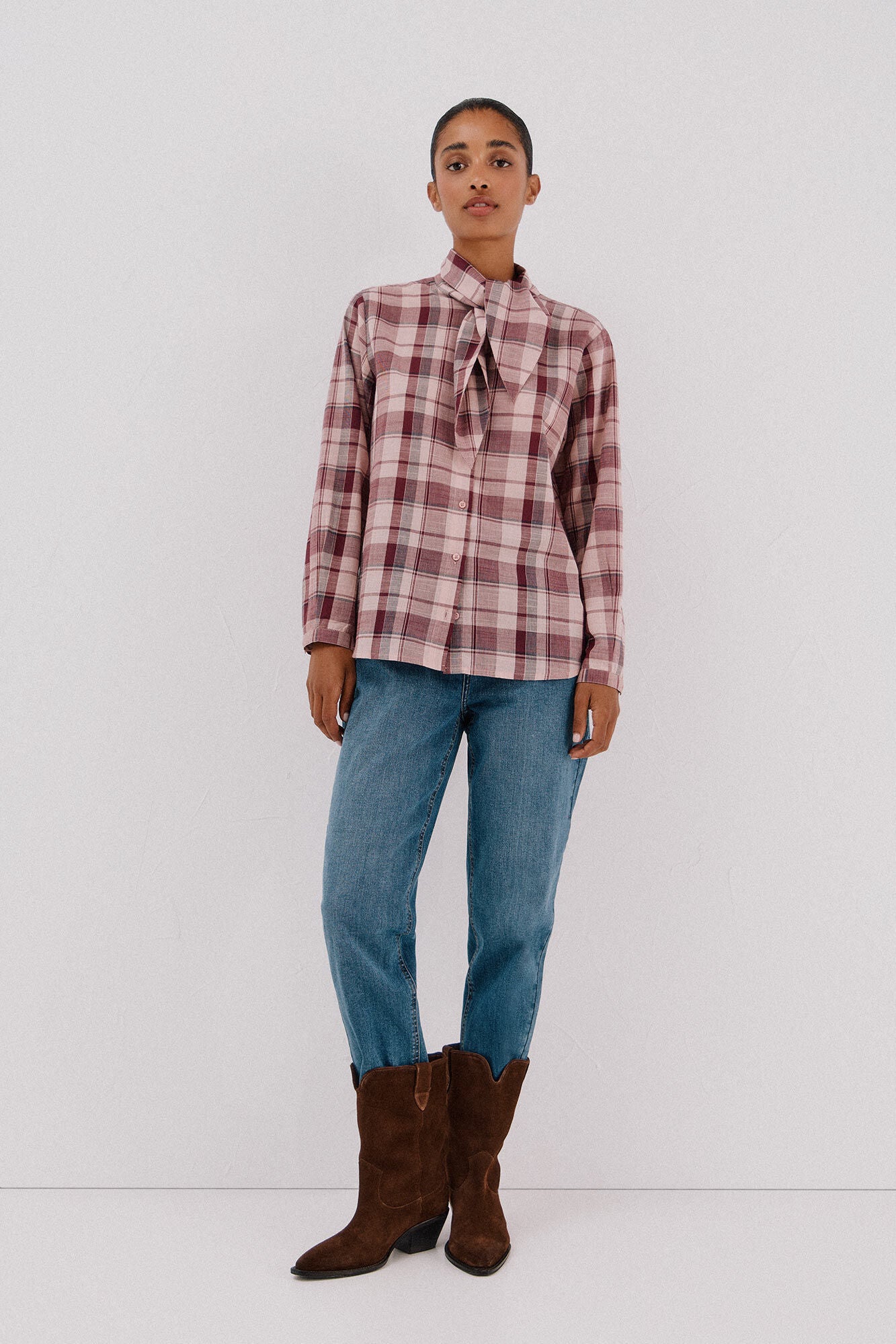 Camisa Manga Larga con Lazada Estampado Cuadros | Line Up Shop