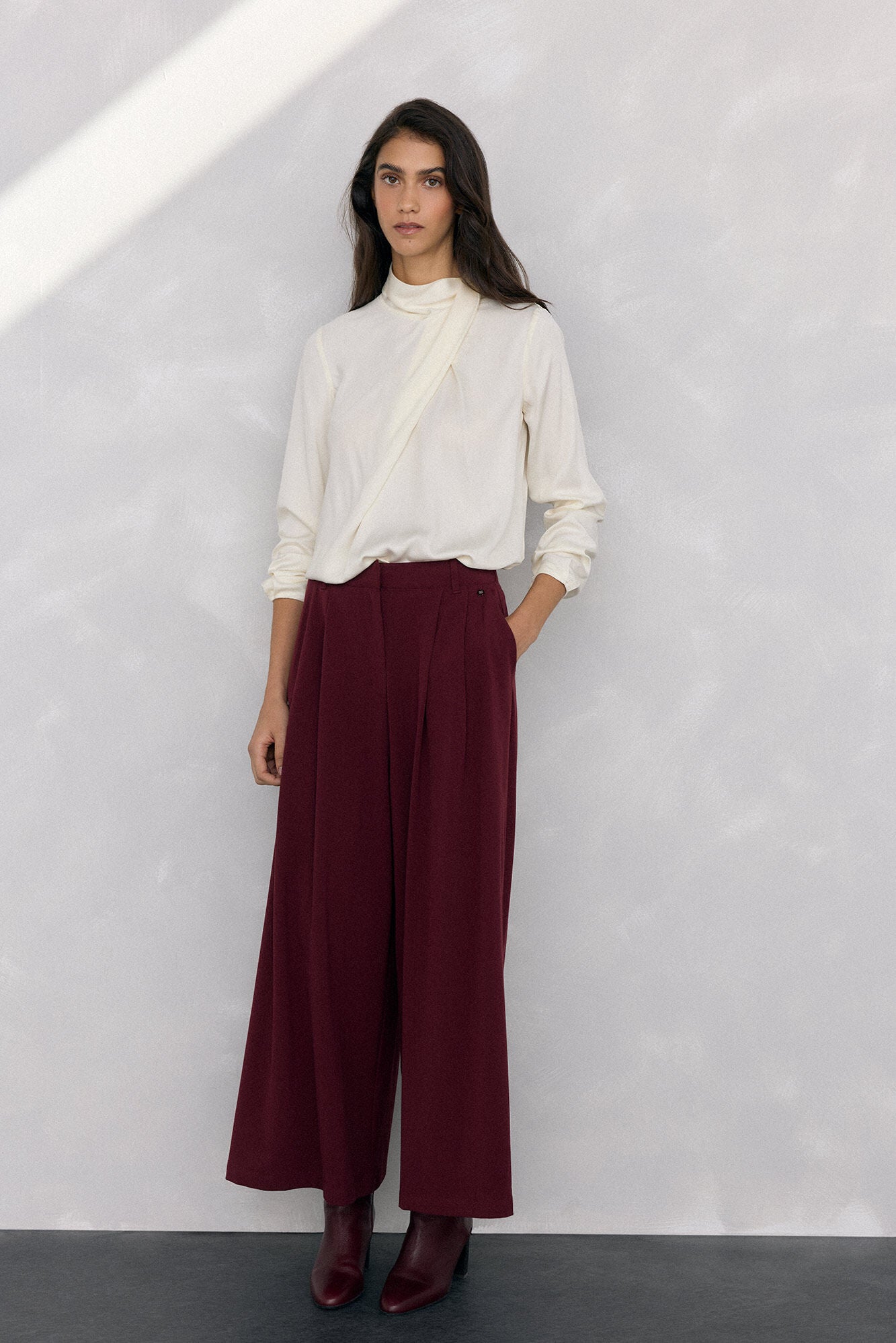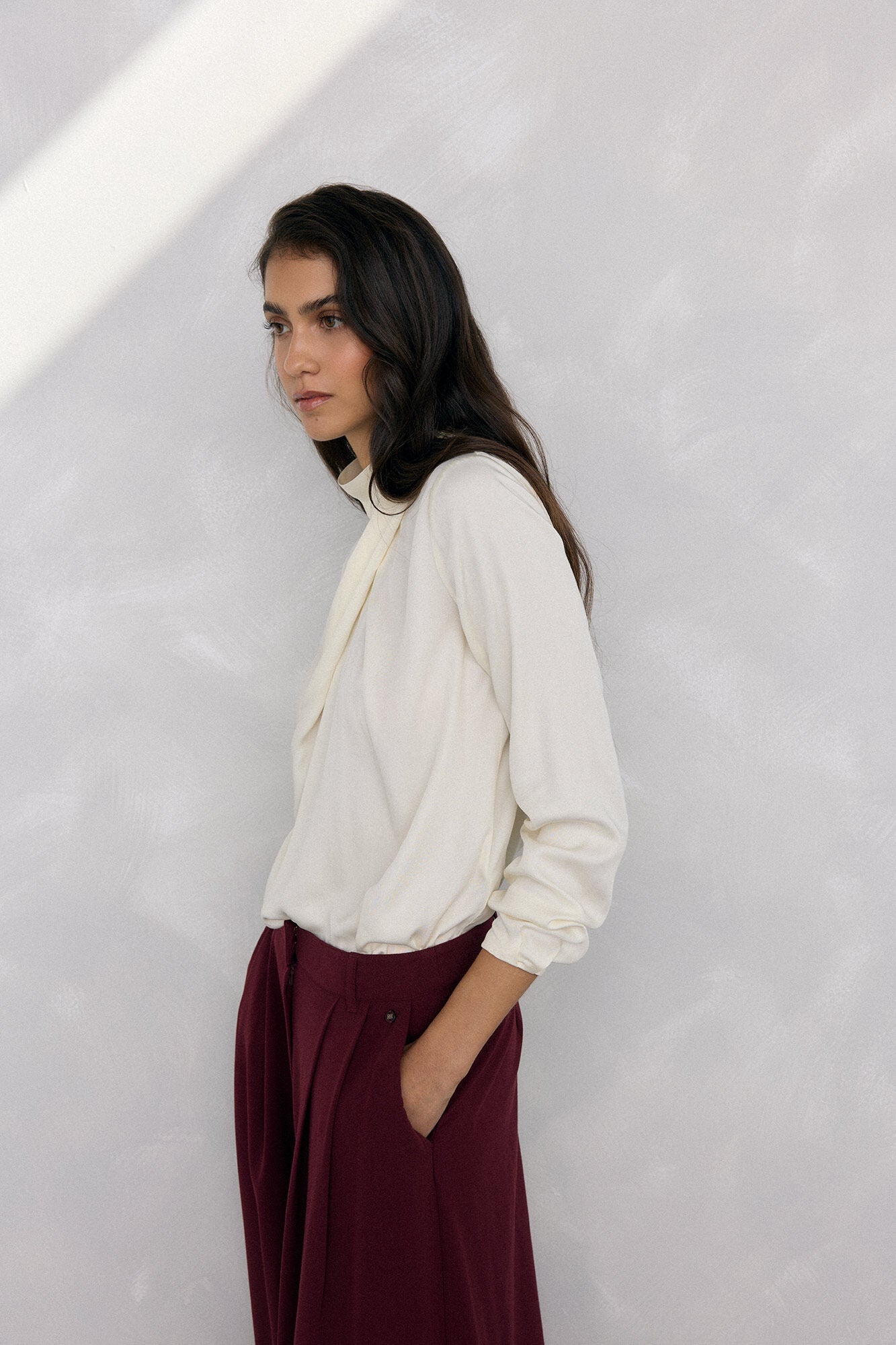 Blusa Manga Larga Cuello Alto de Satén | Line Up Shop