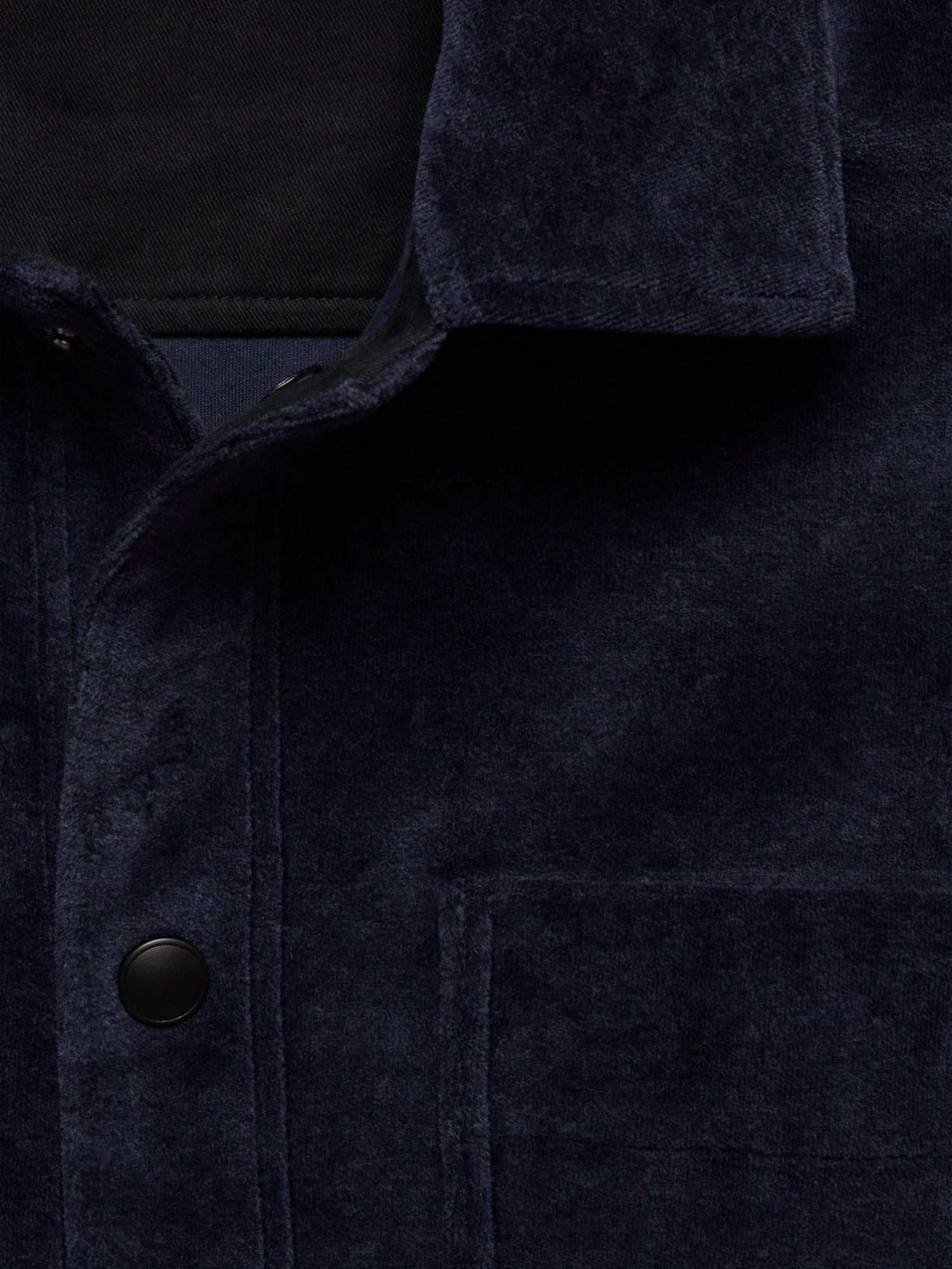 • Nos encanta la estructura suave y el color rico y dimensional de esta tela de terciopelo especial, por lo que la cortamos en una silueta de sobrecamisa versátil para que la tela realmente brille. En serio, es tan suave
