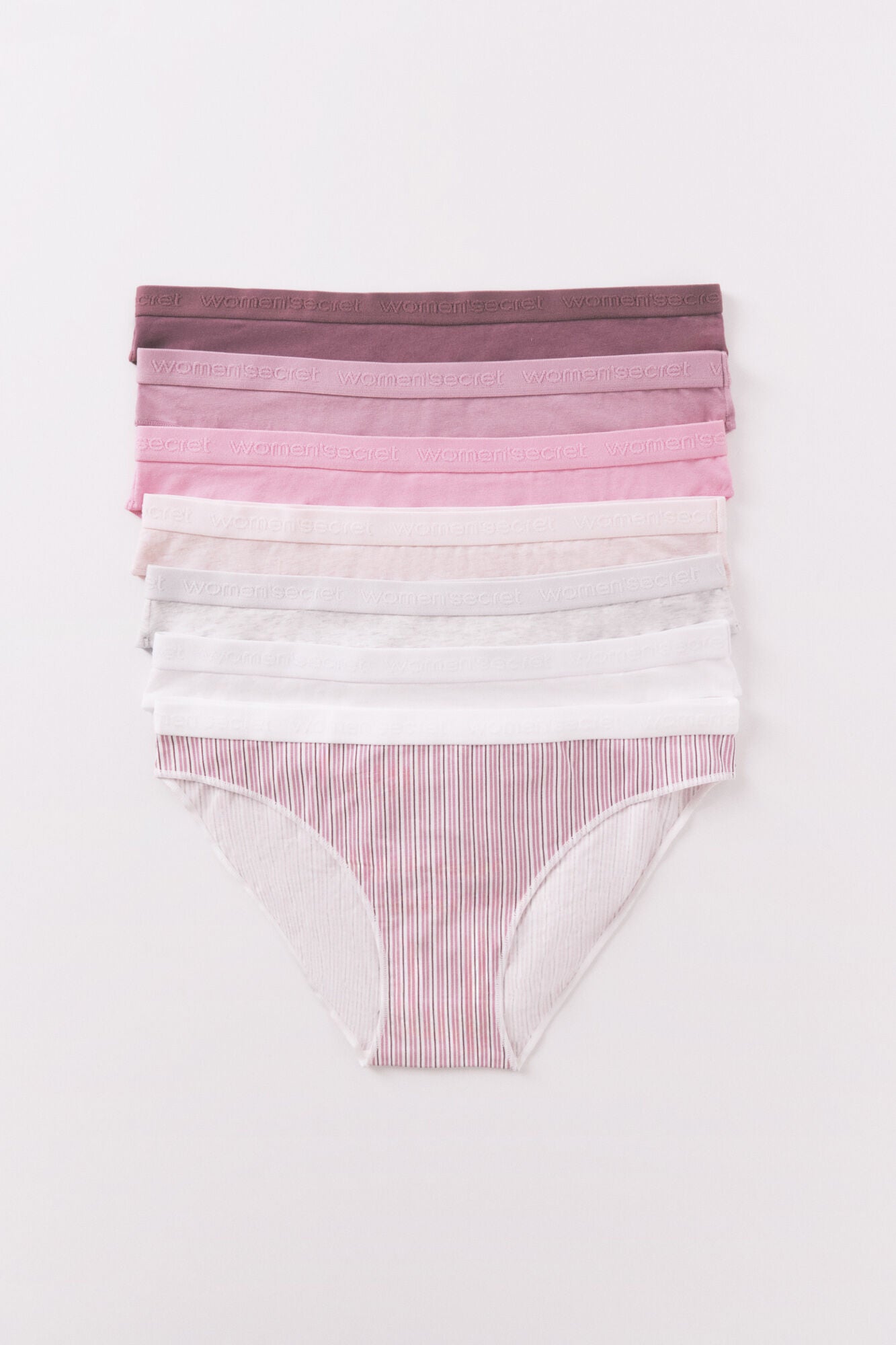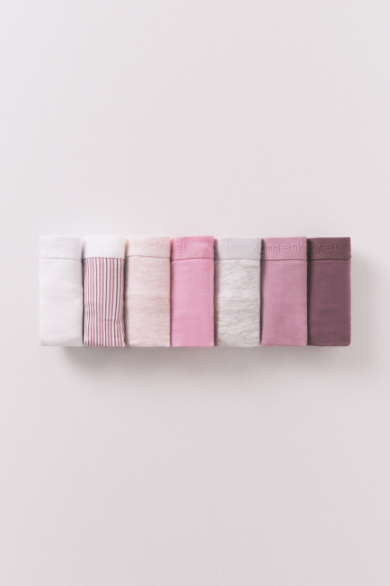 • Paquete de 7 tangas lisas de algodón, con goma a tono con nuestro logo