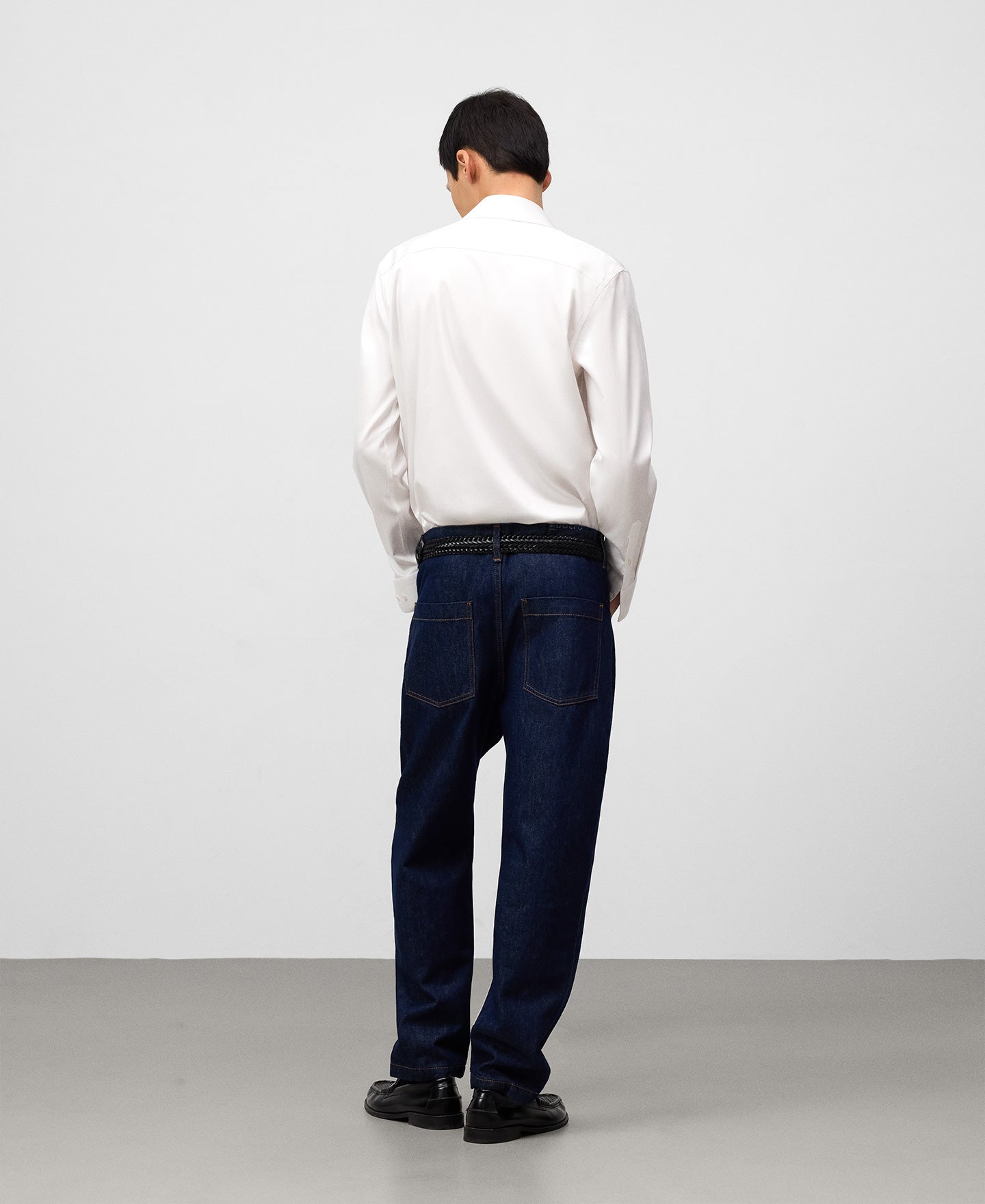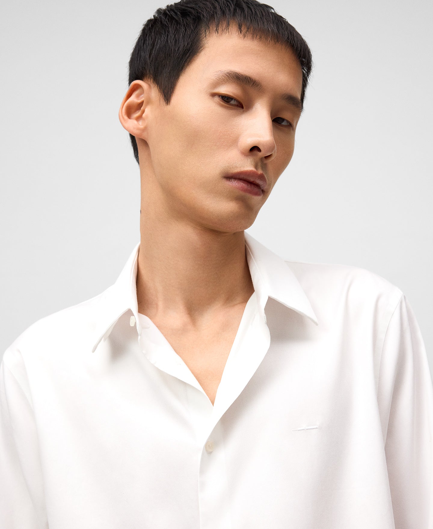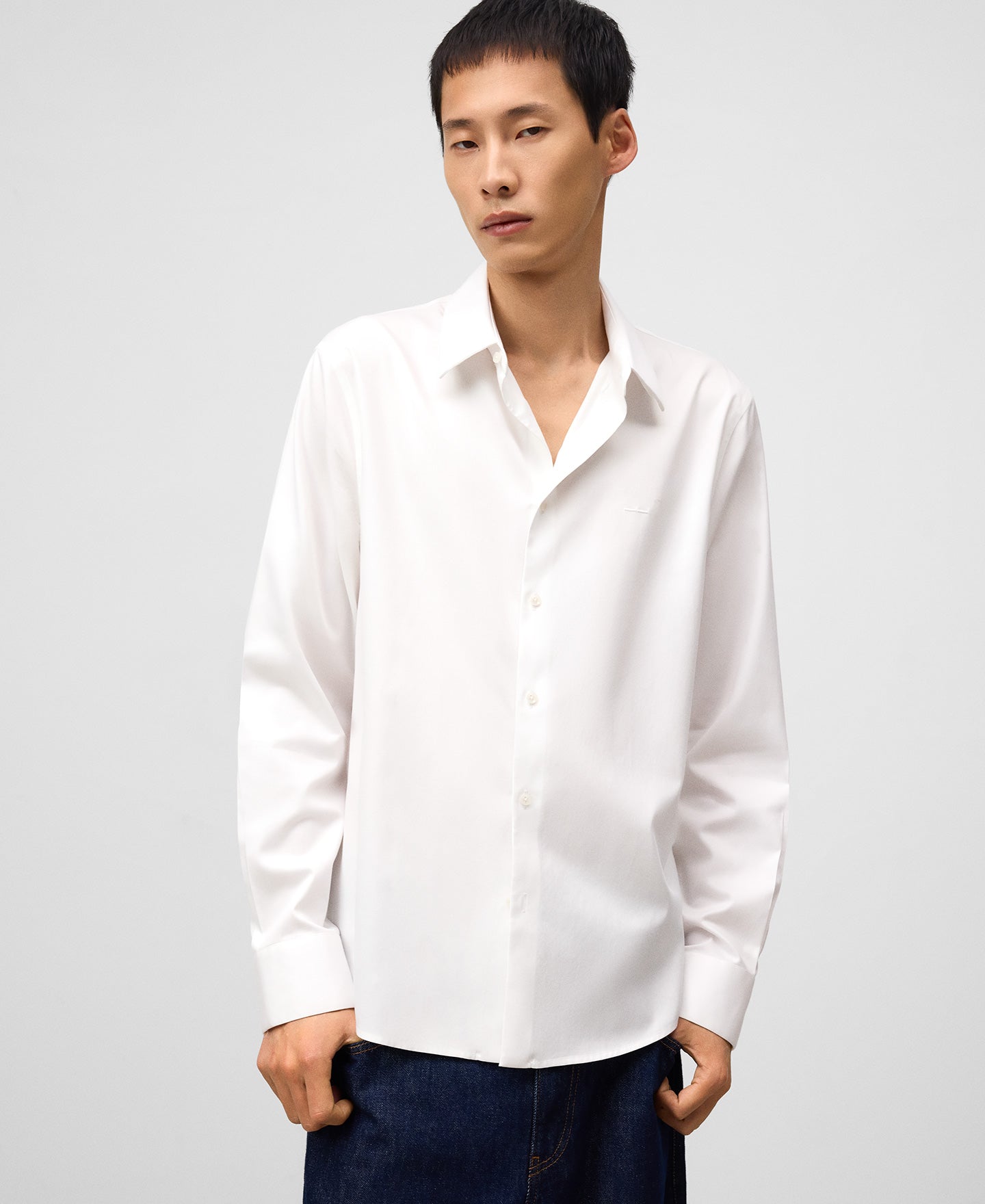 Para camisas casuales, buscá una que te quede bien y colócala sobre una mesa. Medí el borde "superior" del collar. Para camisas de vestir, medí alrededor de la base de tu cuello, dejando un dedo entre la cinta métrica y tu piel.