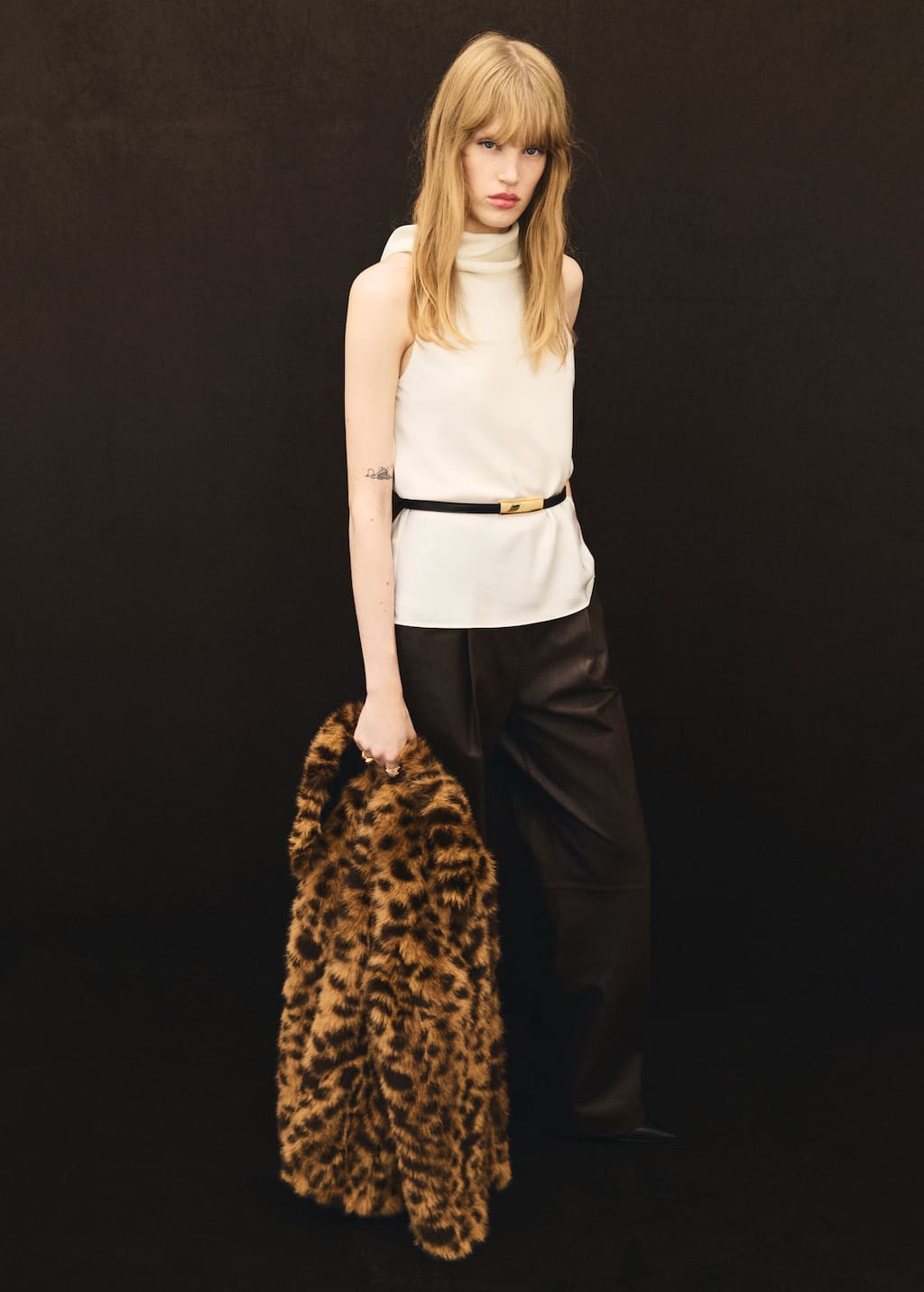 • Con un diseño recto, esta prenda presenta un elegante cuello drapeado con tirantes anchos