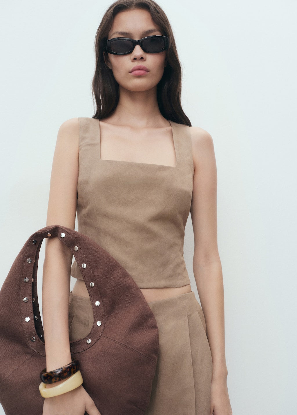 • Esta blusa está confeccionado en un tejido de mezcla de lino. Su escote cuadrado y diseño liso le dan un aire minimalista