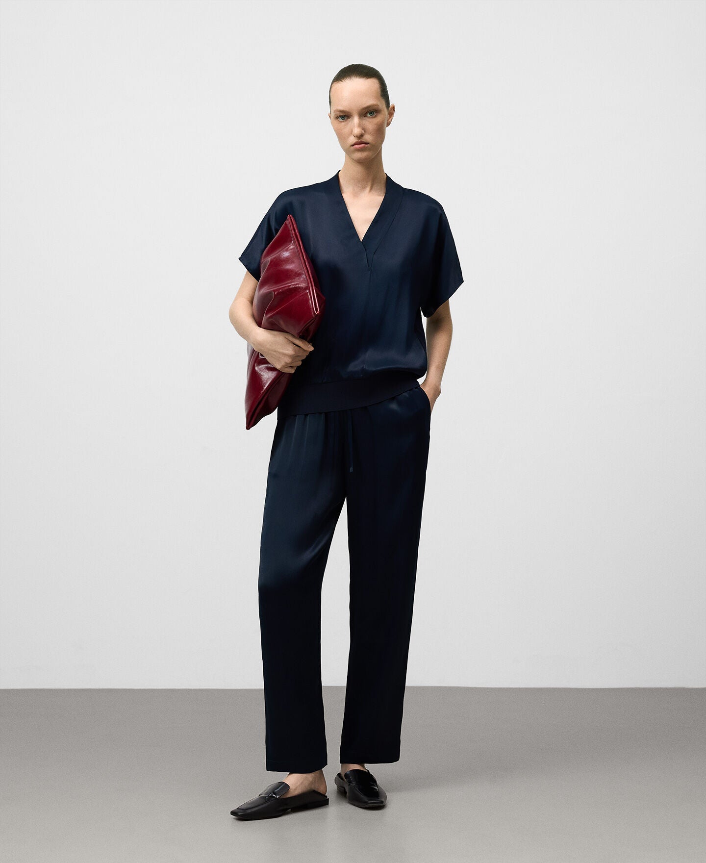 Blusa Manga Corta con Tejido Satinado | Line Up Shop